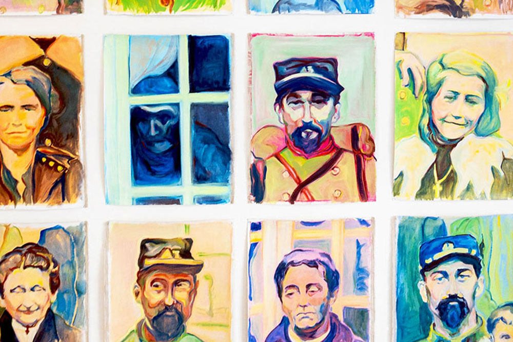 Les « Reposeraies » sont un recueil de récits, imaginés ou vécus, auxquels j’associe des portraits d’anonymes, dessinés, imprimés ou peints, issus de médaillons de cimetières.