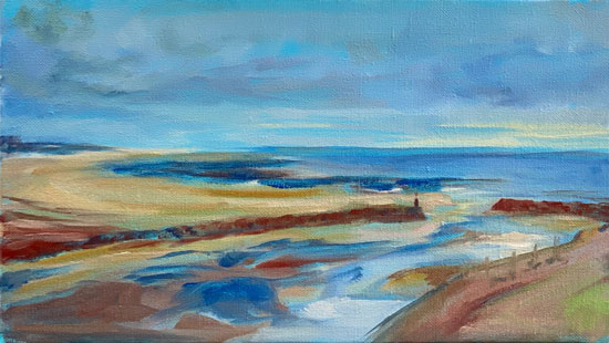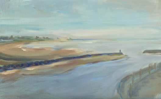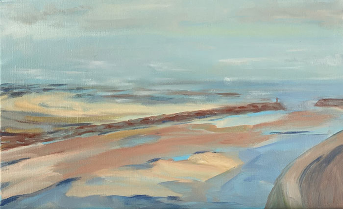 Marée basse à Carteret, matin brouillard, hiver, 2021